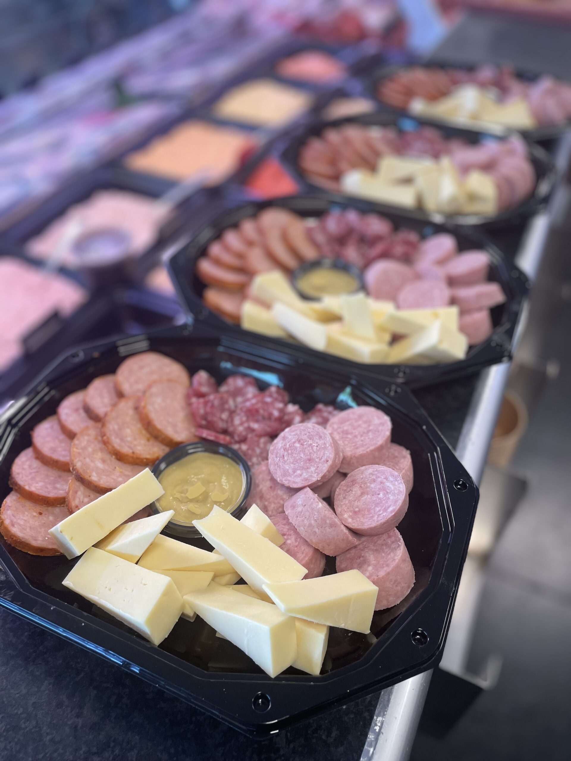 6 verschillende soorten worst, jong belegen kaas en mosterd.